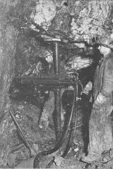 Underground in a Wells area mine, unknown driller. One photograph: b&w; copy.