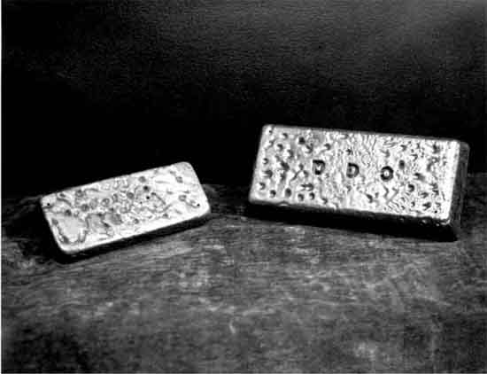 Photograph Of Two Gold Bricks from the Cariboo Gold Quartz Mine. b&w: copy; 7 .5" X 9", (8 .5" X 11")