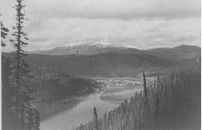 Wells Townsite, view from unknown mountain. One photograph : b&w ; 3.5 x 5 inches. Original. From collection Wp-183-198.