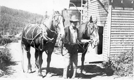 Man is identified on the back of the photograph "William Livingstone, Teamster for the Cariboo Gold Quartz, August 1933". One photograph : b&w ; 4.5 x 2.25 inches. Collection of photographs donated by Dave Johnson (wp-200-307) and date between 1930 and 1941