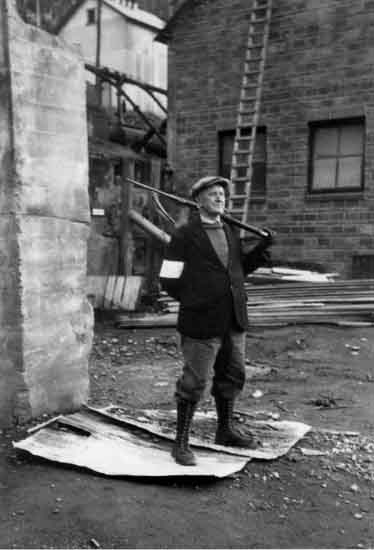 Cariboo Gold Quartz Powerhouse and unidentified armed guard during wartime. Collection consists of photographs donated by Colin MacDonald (wp00562-566,586-591,618,625,631,647,655,660,663,664,680,696-701) photographer unknown. Photographs are predominately in the Wells area.