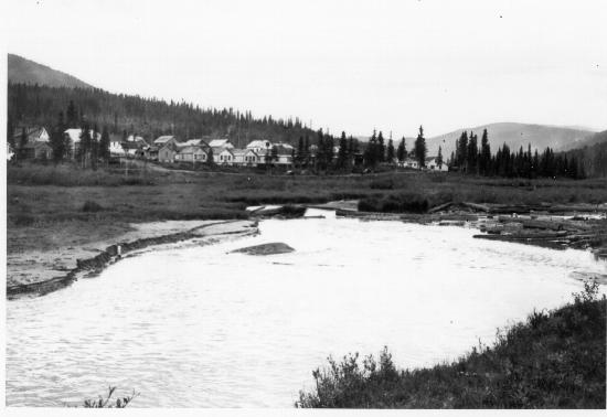 View of Wells from across the Willow River. 1 photograph : b&w ; 11.5 x 8 cm. Collection consists of photographs donated by Colin MacDonald (wp00562-566,586-591,618,625,631,647,655,660,663,664,680,696-701) photographer unknown. Photographs are predominately in the Wells area.