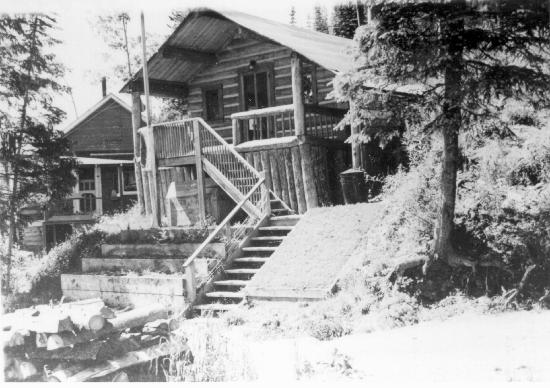 Island Mountain residences. 1 photograph : b&w ; 11.5 x7.5 cm. Collection consists of photographs donated by Eric Johnson (wp00614,615,652,657,738,900-902,909,967-969) photographer unknown. Photographs taken between 1930-1941, predominately in the 1930s.