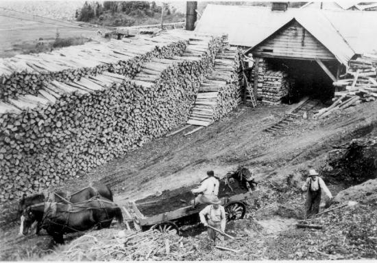 Heating plant and wood supply at the Cariboo Gold Quartz. 1 photograph : b&w ; 11.5 x 8 cm. Collection consists of photographs donated by Colin MacDonald (wp00562-566,586-591,618,625,631,647,655,660,663,664,680,696-701) photographer unknown. Photographs are predominately in the Wells area.