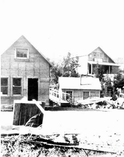 Buildings on the tailings, Wells. 1 photograph : b&w ; 14 x 8 cm. Collection of photographs and postcards donated by Shirley Brown and Mrs. Frew (wp00341, 710-714, 747-752), photographer unknown. All photographs were taken in the Wells area, except one in Barkerville.