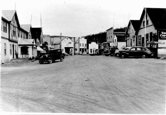 Pooley Street, Wells. Buildings identified are the Wells Hotel, Café DeLuxe, and Sunset Theatre, 1930's. 1 photograph : b&w ; 17 x 11 cm. Collection consists of photographs donated by Eric Johnson (wp00614,615,652,657,738,900-902,909,967-969) photographer unknown. Photographs taken between 1930-1941, predominately in the 1930s.